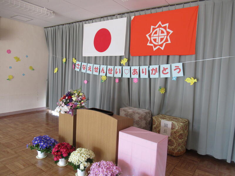 さなえ先生、今日まで森合幼稚園の子どもたちのために力を尽くしてくださって、ありがとうございました。(森合幼稚園教職員一同)