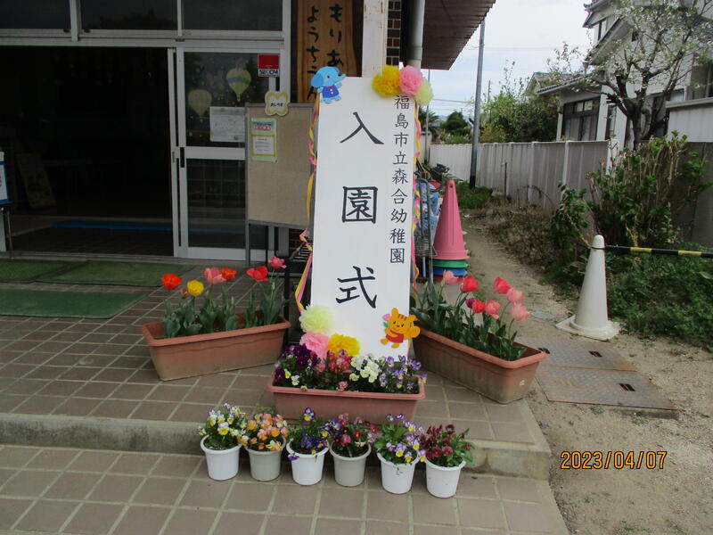 ご入園、誠におめでとうございます。(教職員一同と在園児)