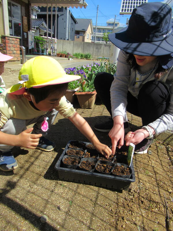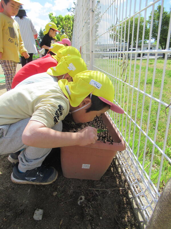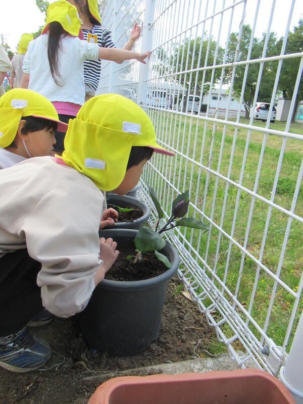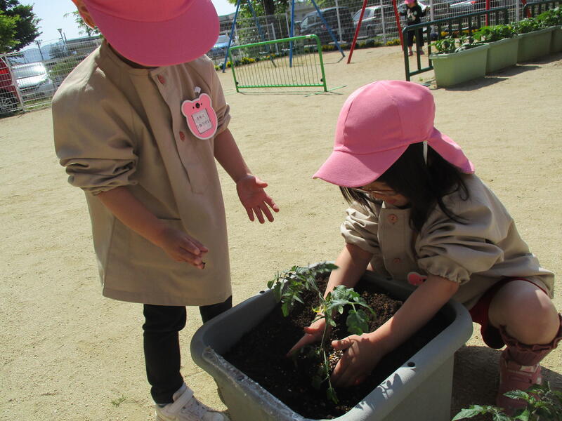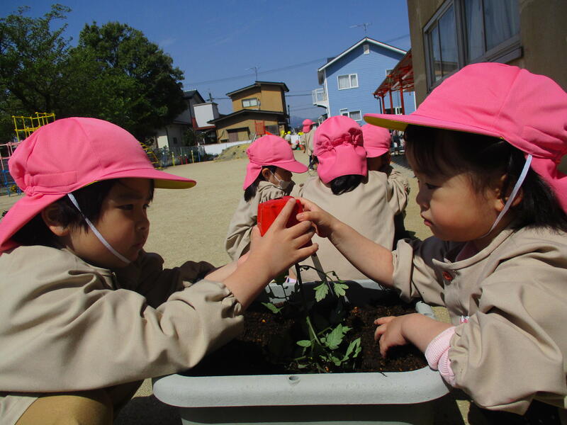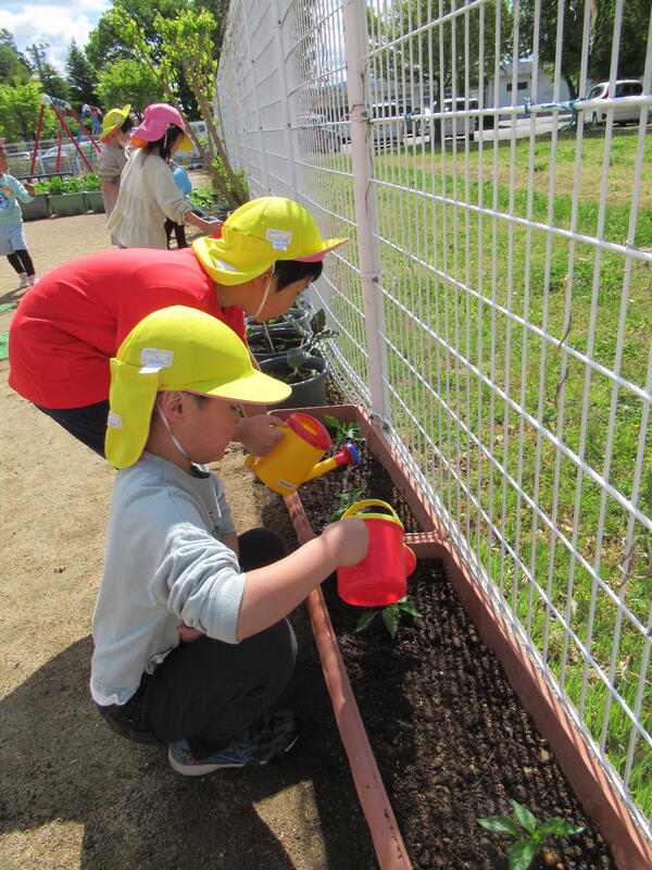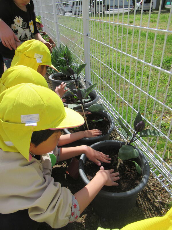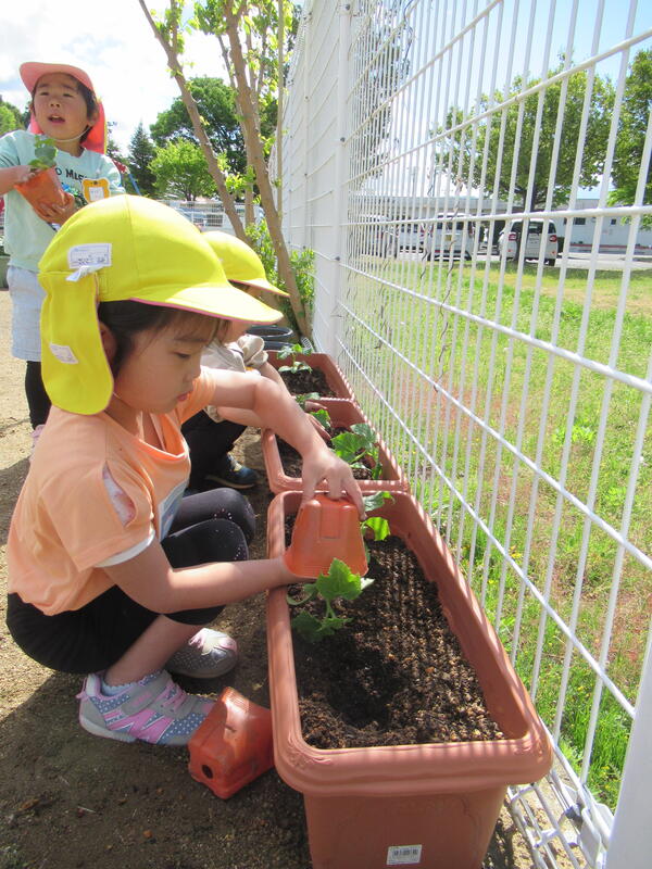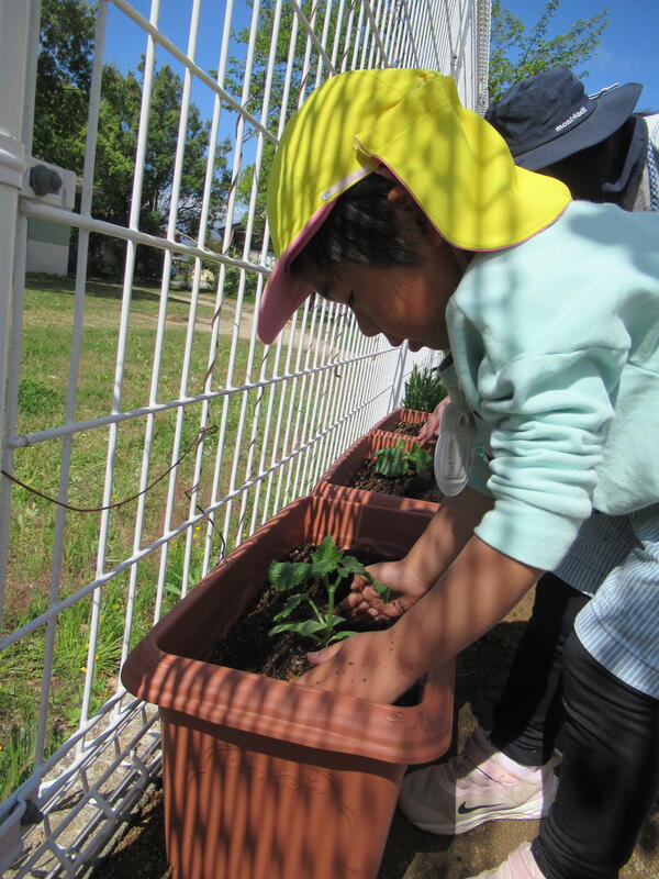 ひまわり組(年長クラス)さんが、野菜の苗を植えました。
