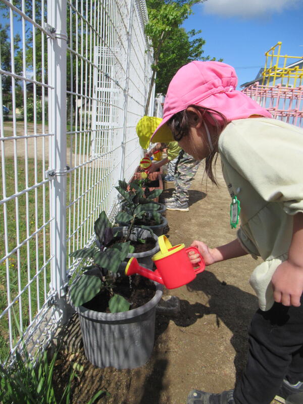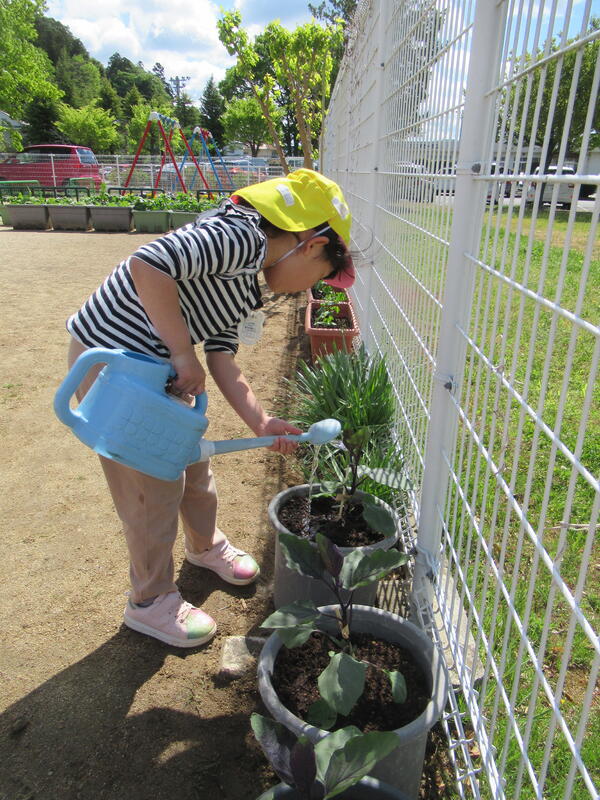子どもたちは、愛情と水をたっぷり野菜にかけてあげました。