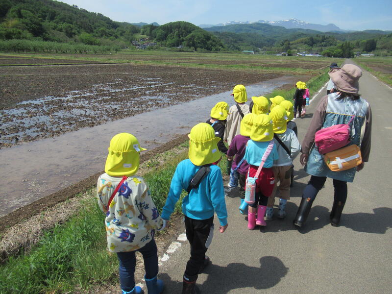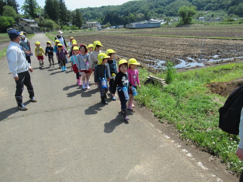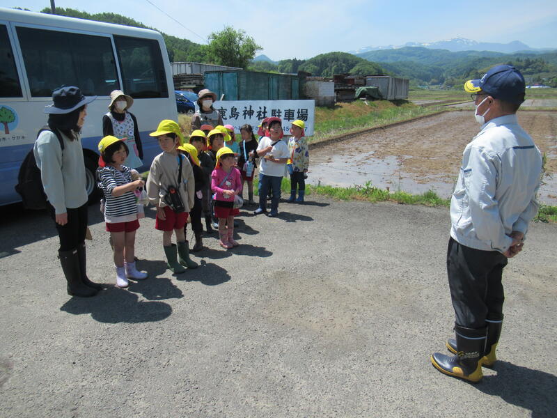ひまわり組のみんなで、米作りでお世話になっているJAの渡辺さんの田んぼを見学に行きました。