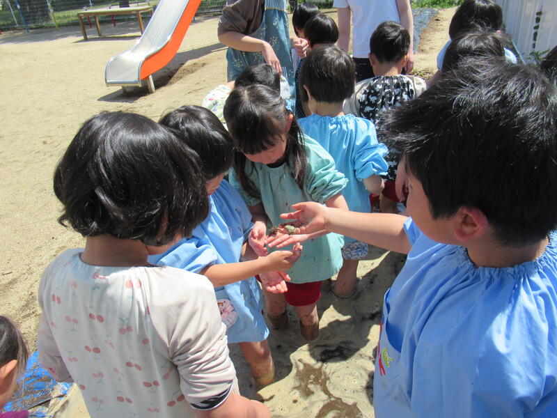 カエルをつかまえたり、タニシをとったり、思いっきり田んぼを楽しみました。