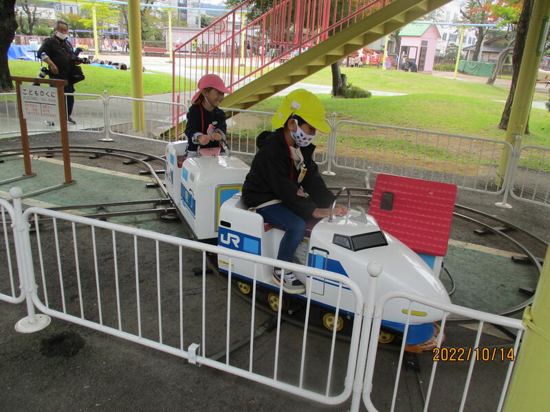 事前に、グループのみんなで乗り物の順番を決めていましたので、それにしたがって、みんな仲良く乗り物を楽しんでいました。