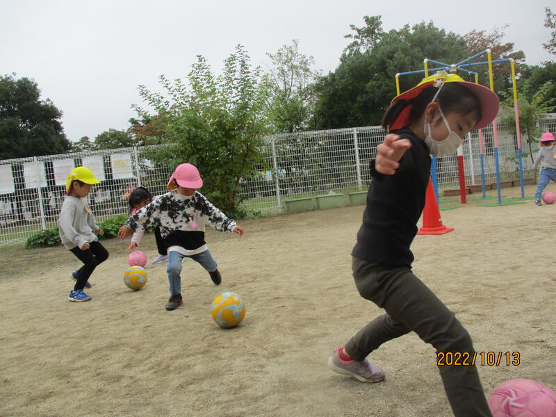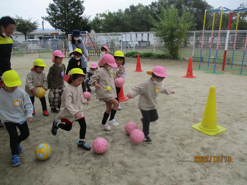 足を使って、上手にボールを転がします(ひまわり組)
