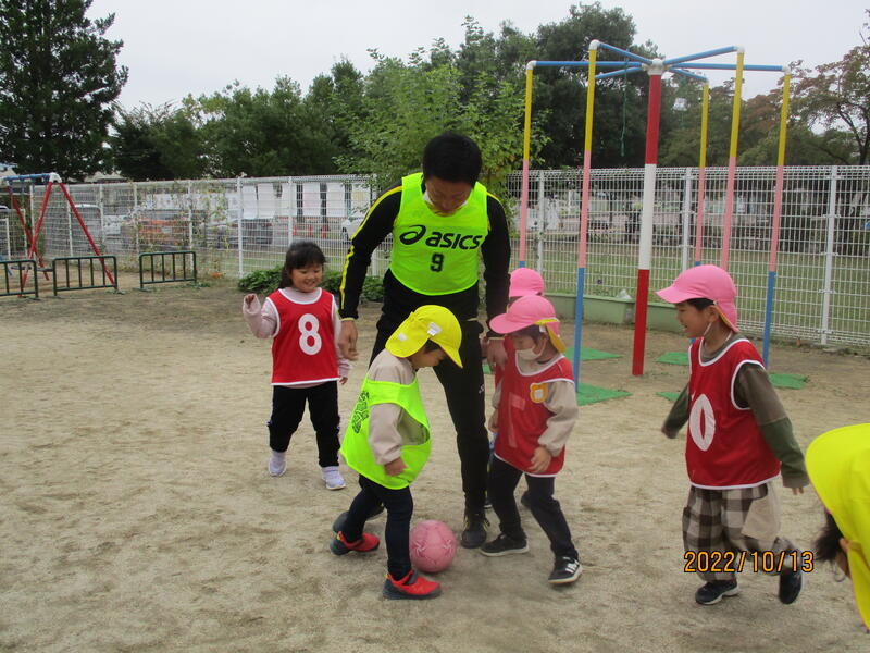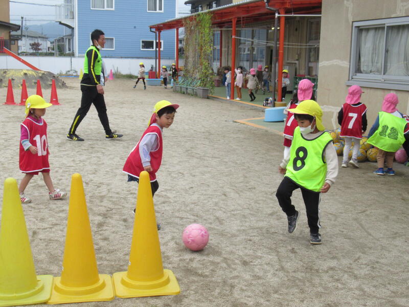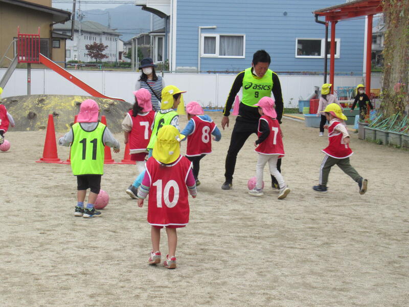 体をいっぱい使って、サッカー教室を行いました。