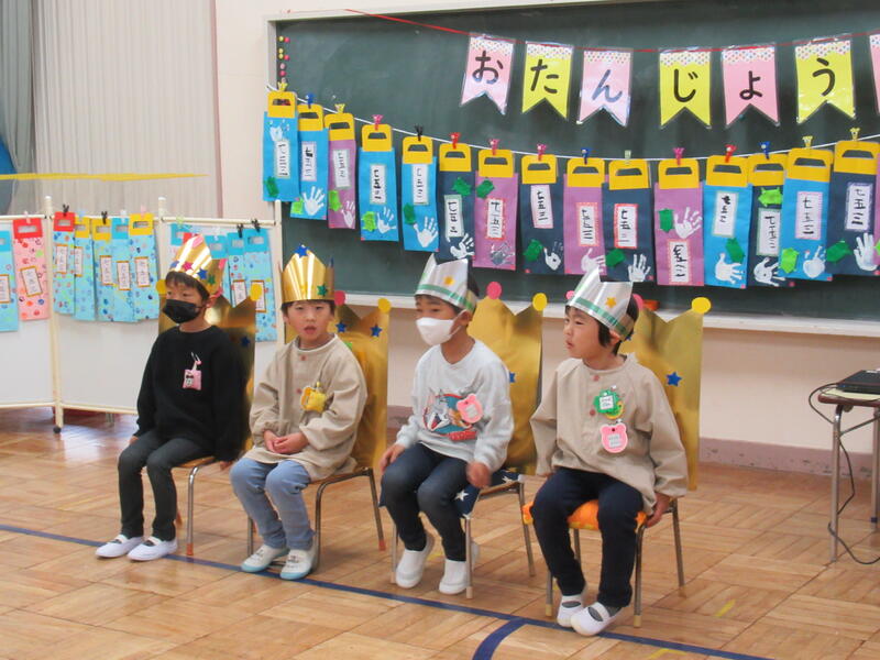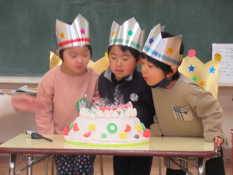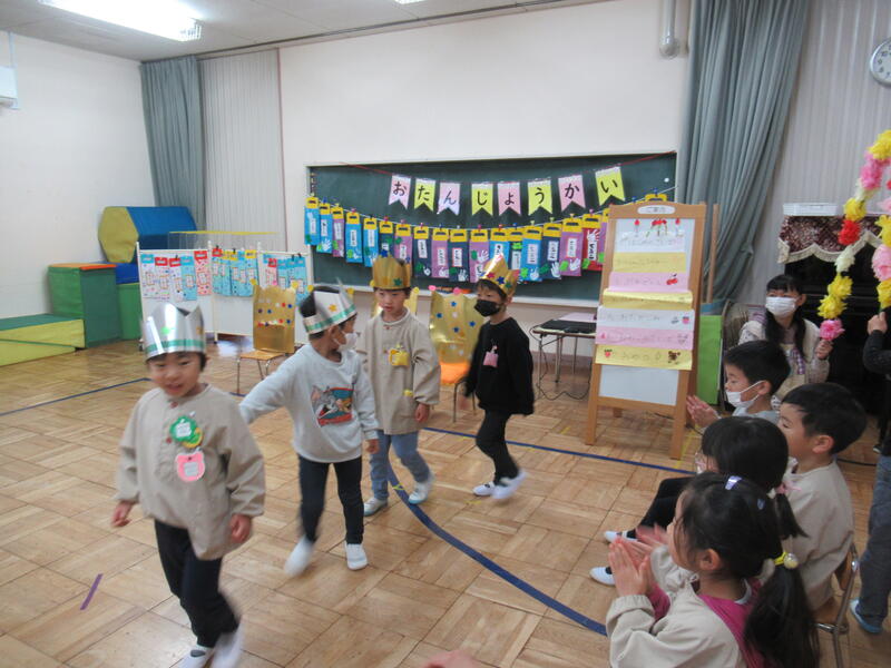 1月生まれのお友達のお誕生会を行いました。1月生まれのお友達は、全員、ちゅうりっぷ組さんでした。