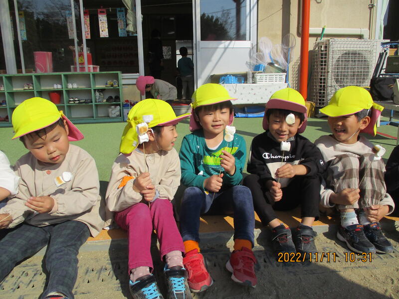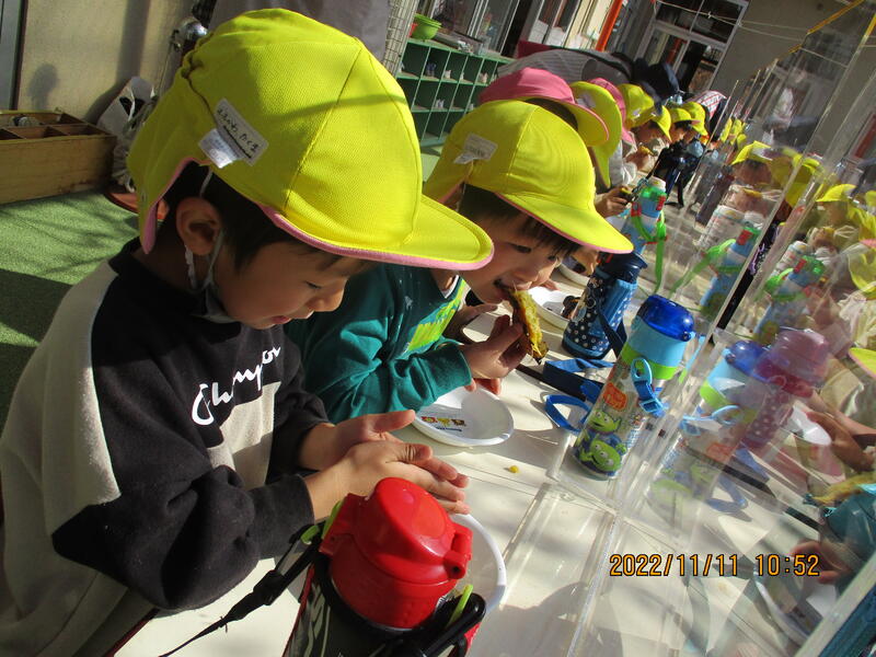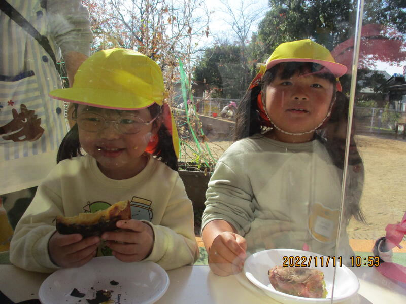 ひまわり組のお友達が一生懸命育てて収穫したサツマイモを焼いて、みんなでおいしくいただきました。