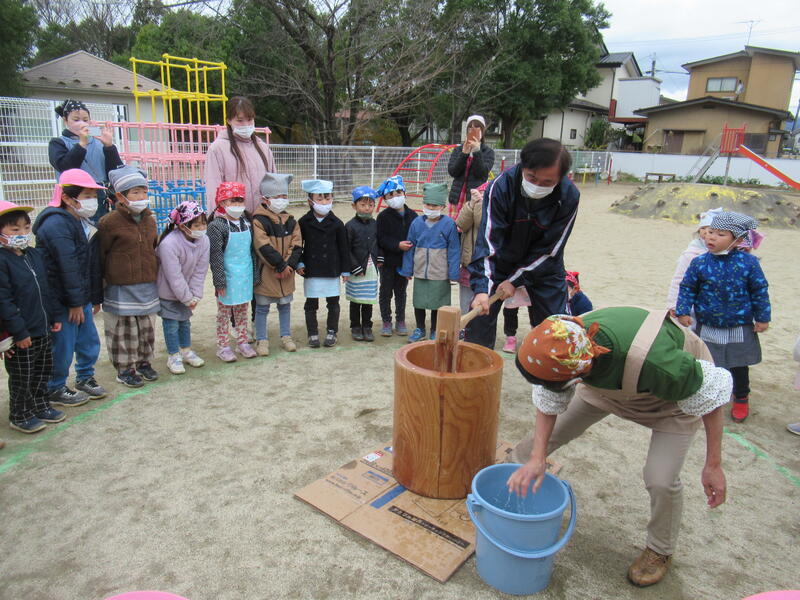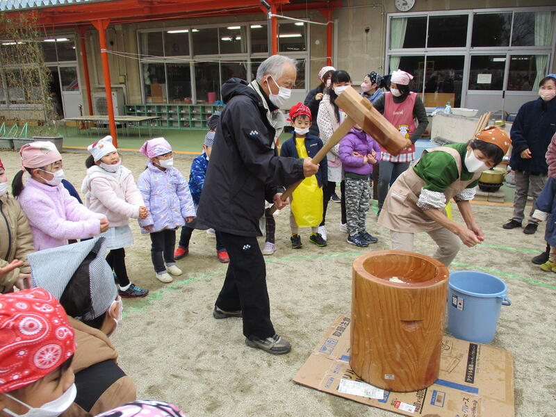 「よいしょ!よいしょ!」みんなで餅つきを応援です。