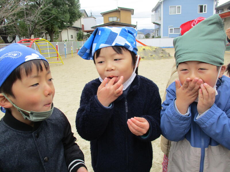 自分の中の鬼を追い出すぞ!みんなで豆まき「鬼は外~!」