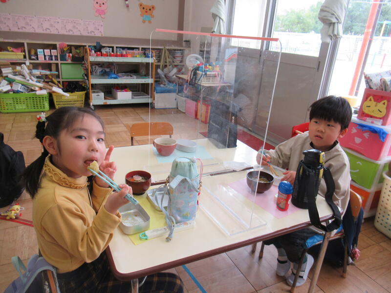 できたてのお餅、おいしいね。仲良しペアのお友達と食べました。
