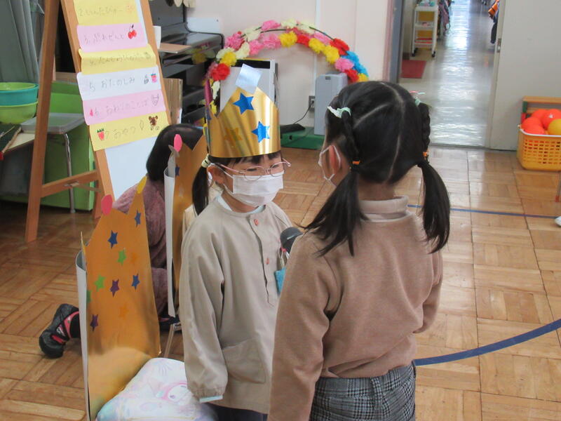「質問は何ですか?」お誕生日のお友達にインタビュー。何を聞かれるか、ちょっとドキドキ。