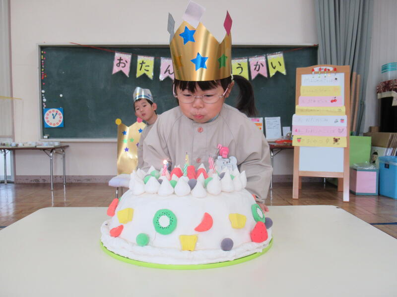 1月生まれのお友達です。みんなにお祝いしてもらって嬉しそう。