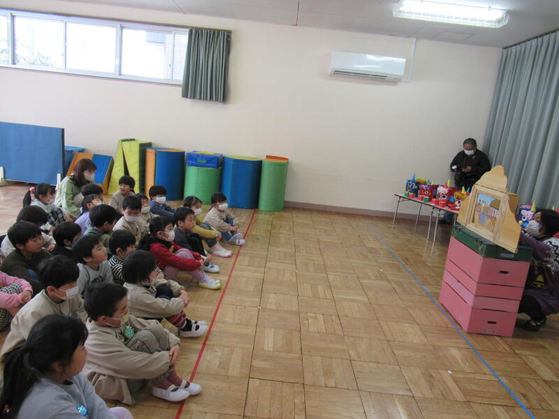 節分にまつわるお話の紙芝居です。みんなお話に聞き入っていました。