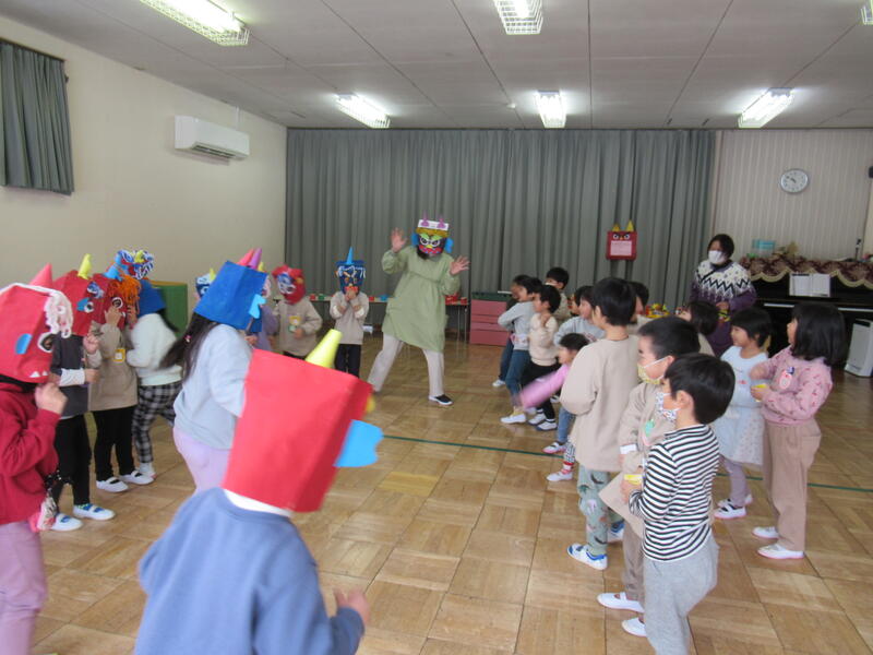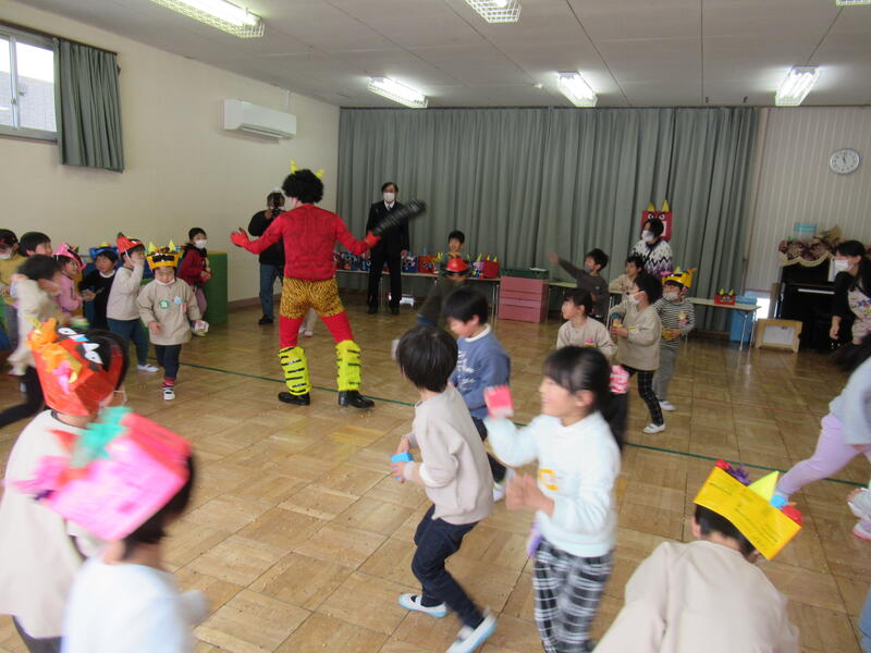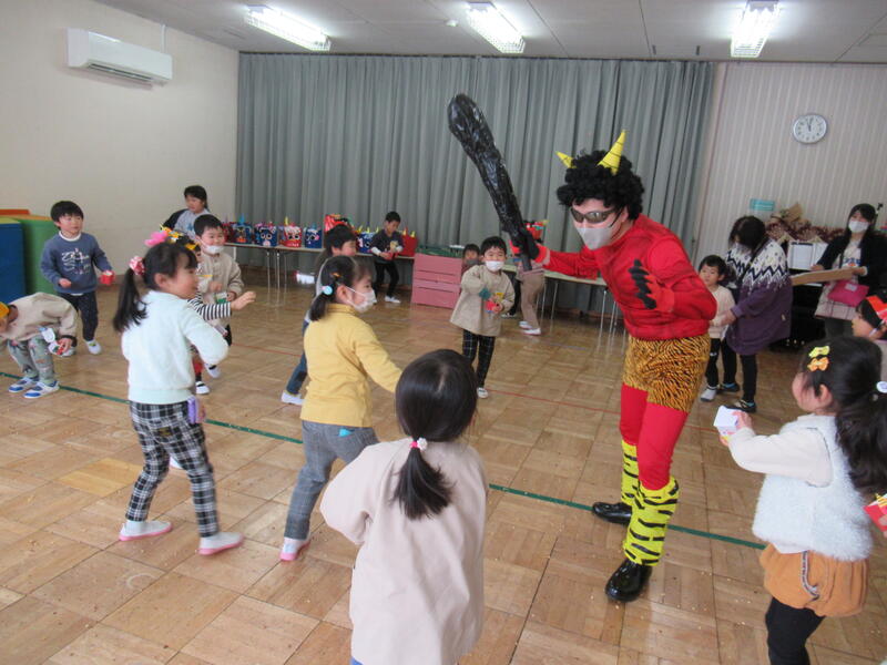 みんなの力で、鬼は逃げていきました。良かったね。