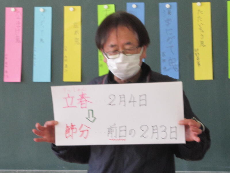 2月1日(水)、節分集会を行いました。自分の追い出したい鬼を発表し、年女の2名が豆をまき鬼を退治しました。自分の弱いところを素直に受け止め、正直に発表する姿を見て微笑ましくなりました。2月4日は立春、暦の上では春ですが、まだまだ寒い日が続きます。かぜや感染症にかからないように十分気を付けてくださいね。