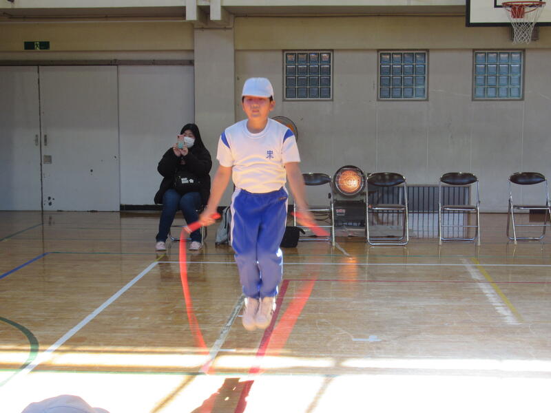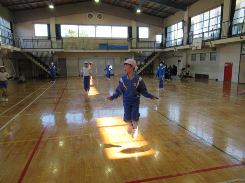 1月20日(金)なわ跳び記録会が行われました。初めに持久跳び、次に各種種目、最後に長縄跳びを全校生で行いました。自分の記録をどれだけ伸ばせるか、昨年の記録より体力や技能がどのくらい向上したか、自分との戦いです。子どもたちは、最後まであきらめず自分の力を出し切り、全員自己新記録を達成することができました。寒い中、応援いただいた保護者の皆様ありがとうございました。