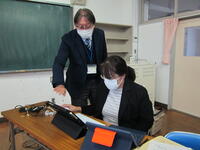 本日放課後、福島市教育委員会教育研修課の指導員の方から、先生方へタブレットの活用訪問研修がありました。新たな活用方法を教えていただいたり、使用方法について質問したり、積極的に取り組んでいました。先生もスキルアップを目指して日々頑張っています!!