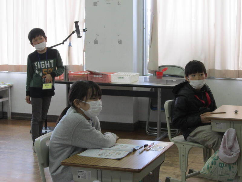 3・4年生は、外国語活動の時間に、特別非常勤講師の三谷先生から外国語を学習しました。今日の学習は、お気に入りの場所を英語を使って紹介しようです。右に曲がって、まっすぐ進むなど、自分も動きながら英語で説明をしていました。果たして到着できるかな?!
