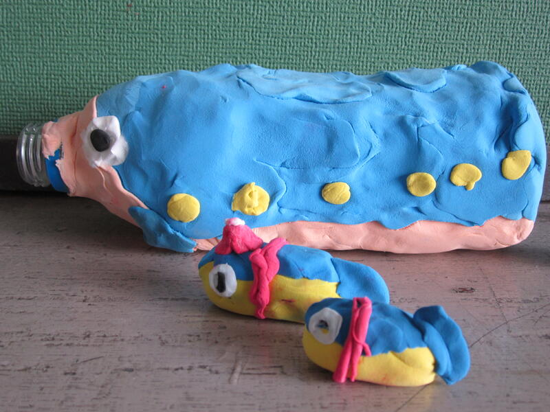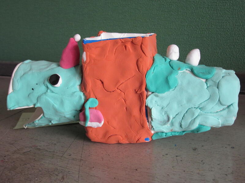 3・4年生が、図画工作の時間に、自分が作りたいものを紙粘土を使い表現しました。形や色を工夫して、どの作品も個性豊かで素敵な作品に仕上がりました。