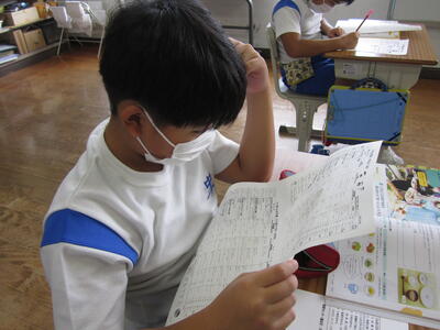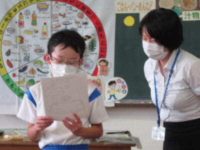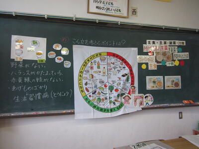 9月28日(火)北部給食センター栄養教諭の本田先生においでいただき、献立の立て方について学習しました。献立を考えるときのポイントは、栄養のバランスを考えて、主食・主菜・副菜・汁物を組み合わせることが大切です。子どもたちは、学習したことを基に、それぞれ秋の食材を生かした献立を立てていました。今回考えた献立の中から一つを選び、11月の給食で提供してくださるそうです。誰の献立が採用されるか楽しみですね。