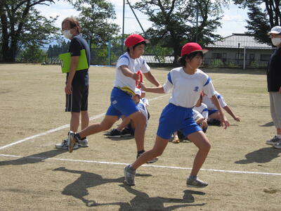 2022年9月28日 10時21分運動会練習3日目の今日は、全校生リレーの練習をしました。初めはなかなかうまくバトンパスができず、時間がかかっていましたが、繰り返し練習をしたり、走る順番を工夫したり、声をかけ合いながら練習をしていました。