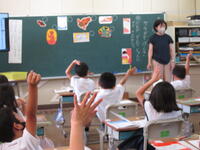 1年生は国語「サラダでげんき」、3年生は算数「かけ算の筆算」、6年生は外国語科「夏休みの思い出」をタブレットを活用しながら楽しそうに学習していました。
