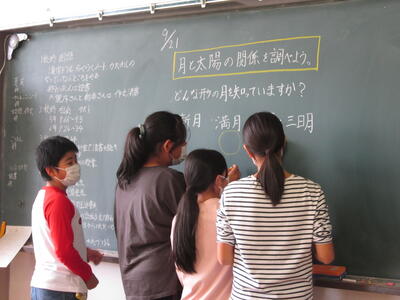 5・6年生は、理科の学習をしていました。月と太陽の関係について考えを発表していました。