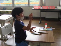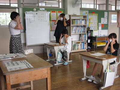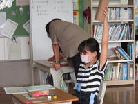 本日3校時、3・4年生の外国語活動の時間に、美谷先生が来校されました。今日の天気や月日、自分の持ち物について学習しました。発音を繰り返し練習したり、美谷先生が発音したものを選んだりする学習をとおし、次第に英語での言い方を覚えていきました。書いて覚えるより、耳で聞いて話せることも大切ですね。