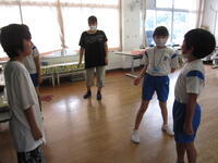 2022年9月7日 10時54分今日は、ALTのベネ先生が来校されました。3・4年生の教室から楽しそうな声が聞こえてきたので、教室をのぞいてみると、「今何時ですか」の学習をゲーム(「だるまさんが転んだ」をベン先生がアレンジしたもの)で楽しく学習していました。昨日はEAAの先生が来校し、今日はALTの先生が来校され、子どもたちは恵まれた言語環境の中で楽しく外国語の学習をしています。