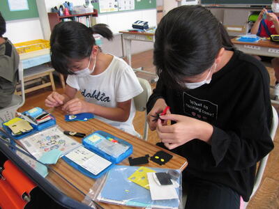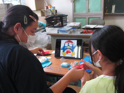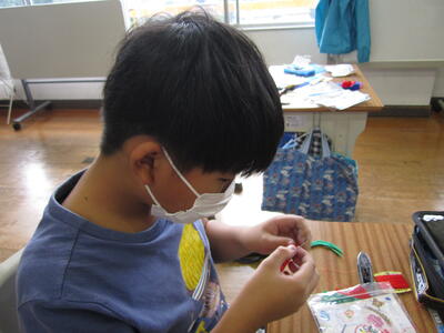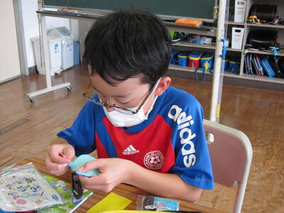 高学年の家庭科で、マグコットを製作しています。フェルトを使って、自分の好きなマスコットの形にマグネットを入れたものが、マグコットになります。今日は、マグネットを入れるために、ブランケットステッチに挑戦しました。糸を通したり、玉止めに苦労していましたが、最後にはブランケットステッチを使って上手に縁をかがっていました。