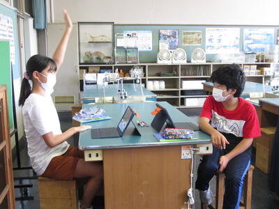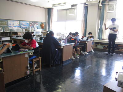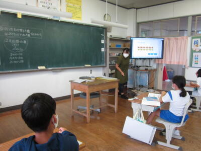 2022年8月31日 10時03分本日、3年生は、算数の授業でデジタル教科書を使用しています。また、6年生は、理科の授業でデジタル教科書やタブレットを活用して学習しています。デジタル教科書やタブレットの活用は、映像によりわかりやすく学習することができます。教科書・黒板と併用しながら、学習内容の理解・定着を図っています。