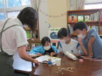 今日は1学期最後のふくよみの日でした。学校司書の小泉さんが、本の読み聞かせや図書室で工作を教えてくださいました。子どもたちは、本を見ながら工作に挑戦し、楽しい昼休みを過ごしました。