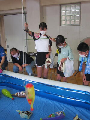 まずは、射的・輪投げ・釣りコーナーなど楽しいゲームコーナーに子供たちはワクワク。