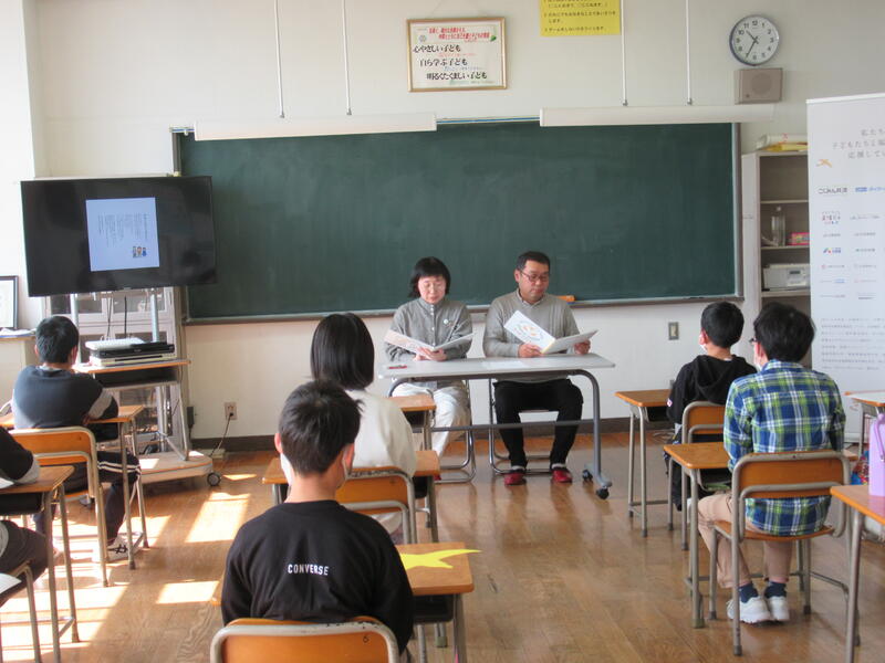 3月8日福島民報社主催による「きぼうのとり」プロジェクトを実施しました。東日本大震災を基にしてかかれた絵本「きぼうのとり」は、3人の小学生が、震災の津波で家を失い、原発事故で避難を余儀なくされながらも、励ましあって前向きに生きていこうとするお話です。読み聞かせをしていただいた作者の江藤淳さん、イラストのよしもとみかさん、ありがとうございました。震災の恐ろしさや、命を守ることの大切さ、また、そこから立ち上がる人間の強さを学ぶことができました。