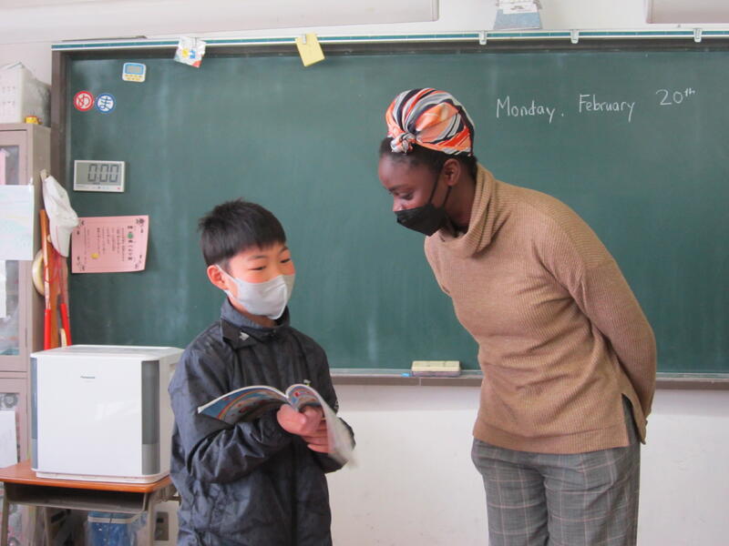 2月20日(月)、今日はALTのベネ先生の来校日です。2校時、3・4年生が、英語でクイズ大会をしていました。英語でスリーヒントを出し、分かったら英語で答えていきます。教科書の挿絵を使ったり、教室にあるものから問題をだしたり、楽しく学習をしていました。