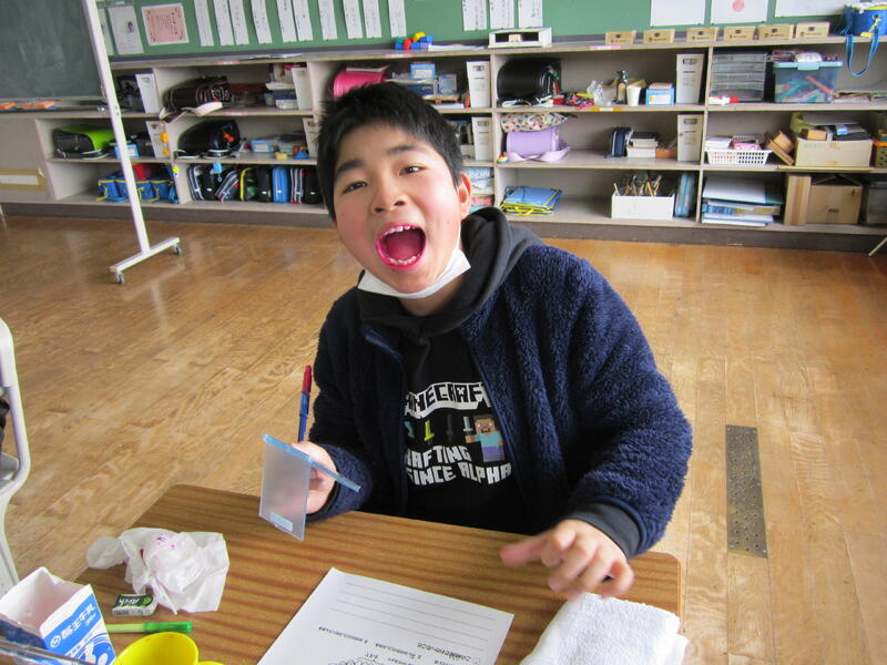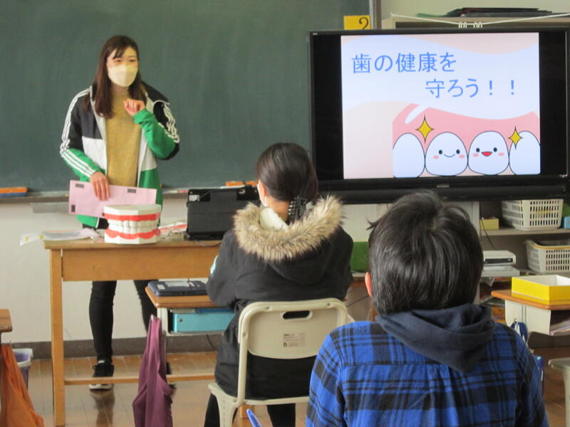 2023年2月22日 14時36分22日(水)、歯科指導を5・6年生で行いました。養護教諭から、虫歯予防や正しい歯みがきの仕方についてお話がありました。また、実際に正しく歯磨きができているか染め出しをして確認しました。本校では、大切な歯や口の健康を守るために、毎日良く噛んで食べることを意識し、食後の歯磨き、フッ化物洗口(毎週水曜日)を行っています。ご家庭でも正しい歯みがきの仕方やむし歯の早期治療について、引き続きご協力をお願いします。