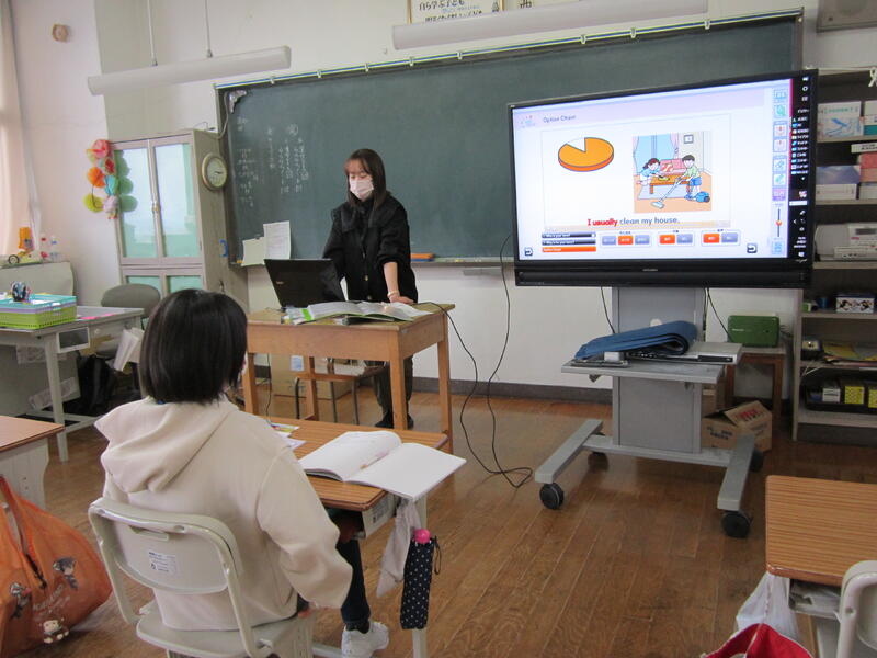 5年生は、外国語の時間、EAAの村田先生と日常生活で使えるフレーズや動詞の学習をしました。1対1での学習は、学習への集中も定着も深まります!!