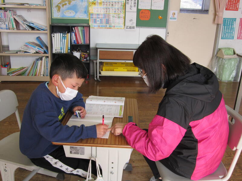 ハートサポート相談員の横山先生が、毎週本校に来てくださいます。子どもたちの遊び相手になったり、学習面での支援をしていただいたりしています。本日は、4年生の学習のサポートをしていただきました。本校勤務が永く全児童のことをよくわかっていて、様々な面でご支援をいただいています。