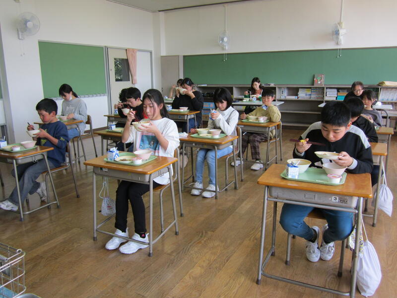 おいしい給食をありがとうございました 2023年3月22日 13時06分 今日の給食が、中野小学校で食べる最後の給食となりました。最後のメニューは、「やきにくどんぶり、せんべい汁、いちごゼリー」でした。特に、やきにくどんぶり(牛丼)は、大好評でした。ランチルームで、全校生でおいしくいただきました。給食センターの皆様、今までおいしい給食をありがとうございました。
