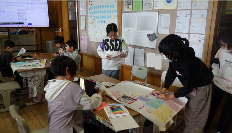6学年の子どもたちは、修学旅行思い出を掲示物にしました。