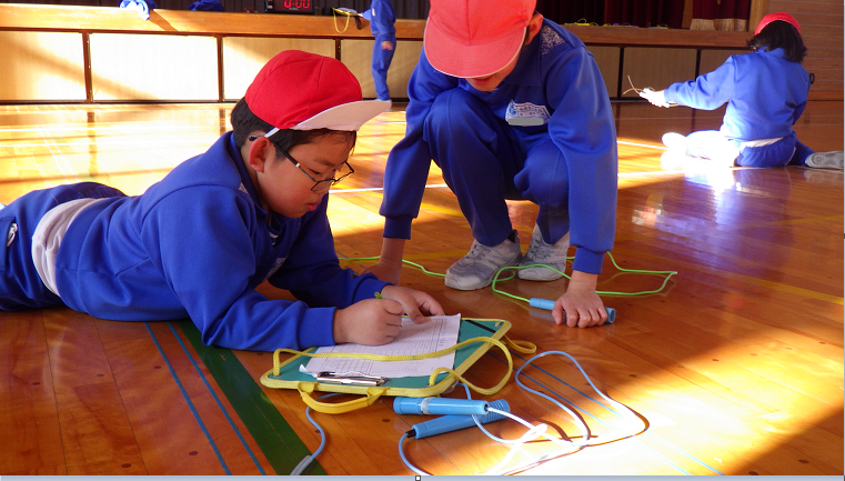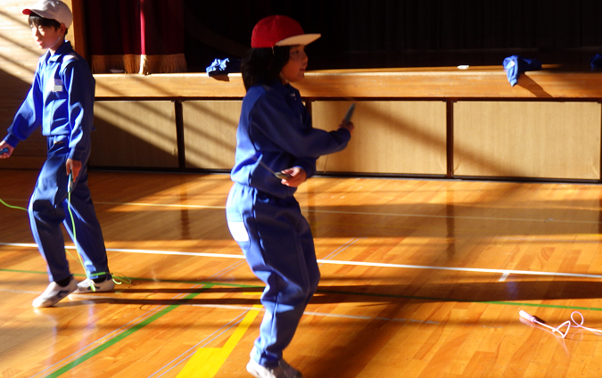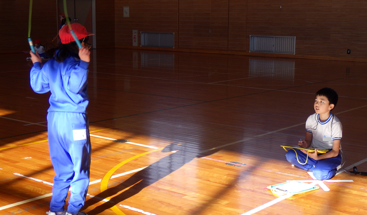 3学年の体育科授業では、単元「多様な動きをつくる運動」でなわとびを学習しています。