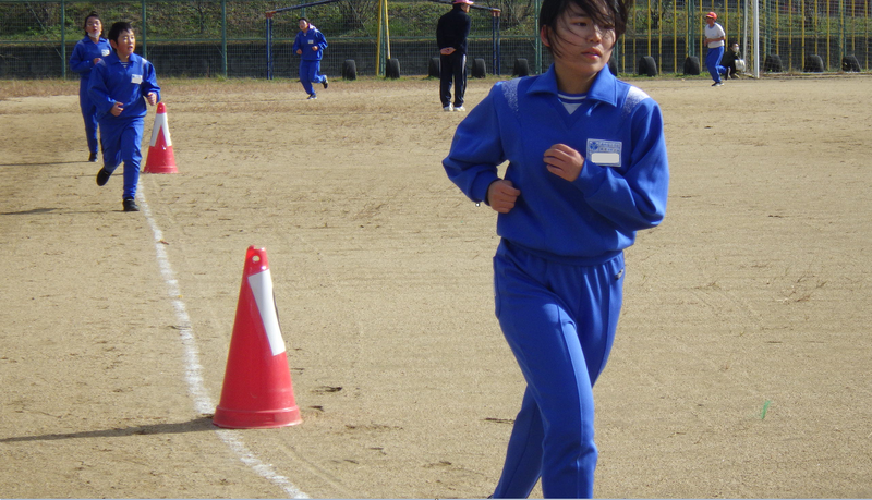 最初の組がスタートしました 2分間で何周走ることができたかを記録します。
