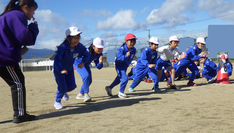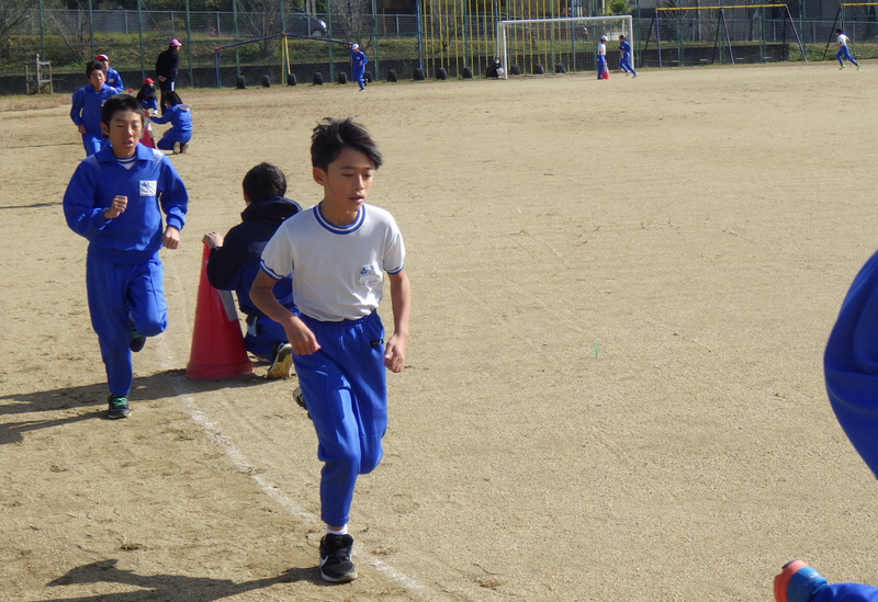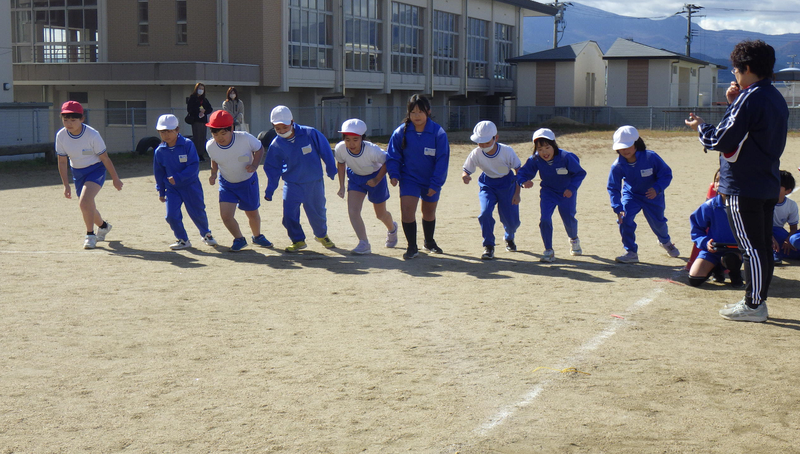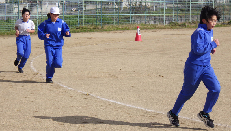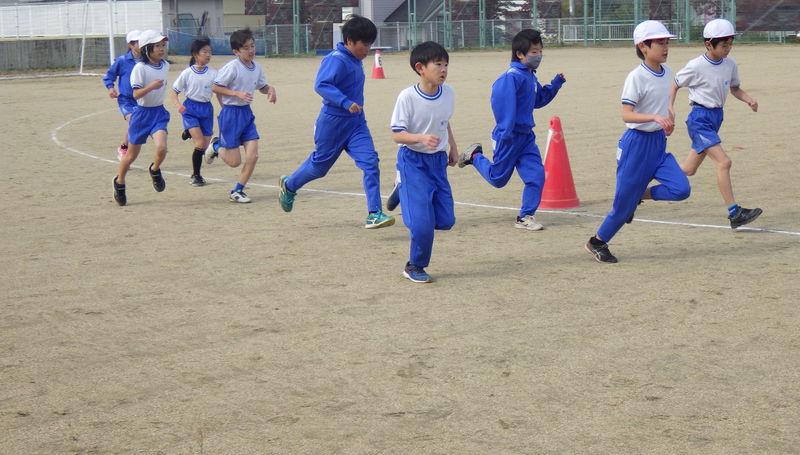 7日(木曜日)校庭で『マラソン記録会』を行いました。4校時は3学年、4学年の子どもたちが走りました。