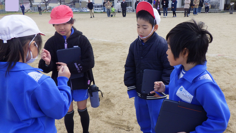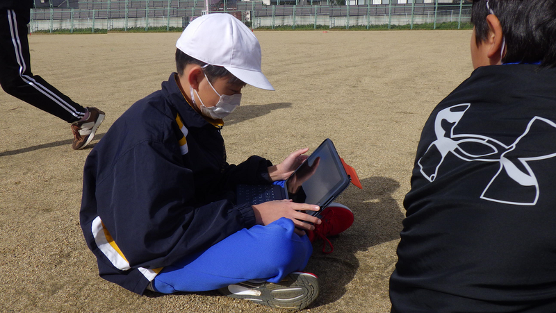 ペアを組むお友だちが、走っている4分間をタブレットで録画します。