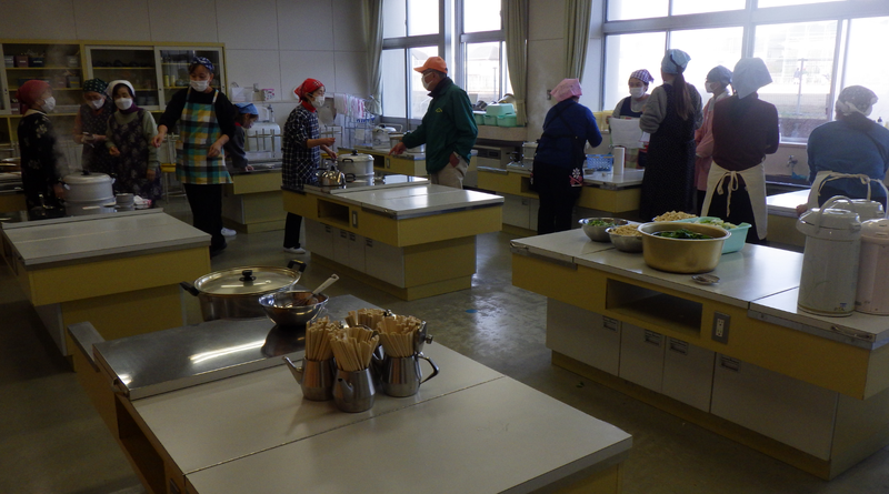 準備は前日夕方までに食材調達と下ごしらえ、当日は午前8時過ぎから、むつみ会・PTA健全育成委員の皆様が中心になって調理をしてくださいました。