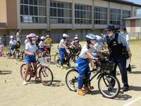 今回の交通教室では、交通ルールを理解させるとともに、自転車の正しい乗り方と安全な通行の仕方を学習することがねらいでした。松齢橋交番の方から安全な歩行や自転車の正しい乗り方を説明していただき、校庭や道路を使って練習しました。