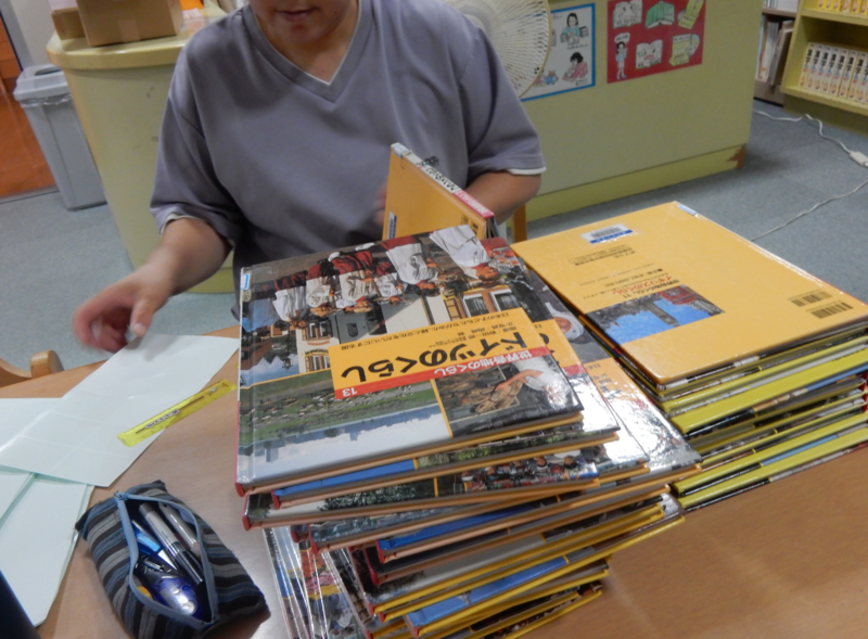 本日29日は、学校図書館で図書保護シール貼り作業も進めてくださいました。