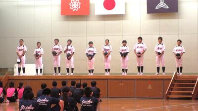 今日は私たちのためにこのような会を開いてくださりありがとうございました。私たちは一人ひとり目標をもち、そして、団体としての目標をかかげ、たくさん練習に取り組み、努力を積み重ねてきました。その成果を来週の新人戦で十分に発揮し、たとえ、結果を持ち帰れなかったとしても、精一杯がんばりたいと思います。改めて、このような会を開いてくださり本当にありがとうございました。悔いの残らないようにがんばります。応援よろしくお願いします。(ソフトテニス部部長)