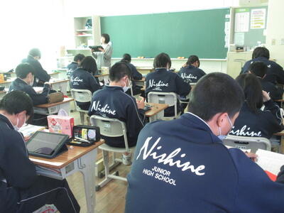 どの学級も落ち着いた雰囲気で,授業に熱心に取り組む様子が見られました。Good Job, Nishine youth! Keep on studying hard!