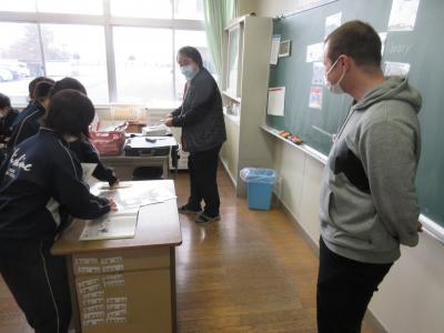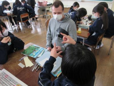 ALT来校 2021年1月27日 17時25分 本日はALTの先生が来校しました。授業では、すごろくを使って英語の表現を練習しました。ALTの先生へ伝わるように、一生懸命説明する姿が素晴らしかったです。